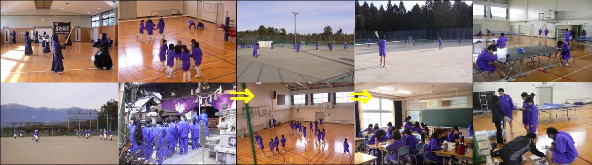 今日は多くの部活動が行われていました。外では野球部、テニス部男女が、屋内では剣道部、バレー部、バスケット部、卓球部が活動していました。今日は昨日の雪もとけ、朝からとてもよい天気でした。