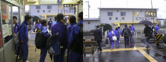 保々中駅伝チームは保々駅6:55発の電車で無事、出発しました。今降っている雨も女子スタートの10時にはあがってくれるといいのですが・・・。みんなで祈っていてください。