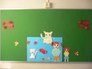 体育祭が終わって、次第に秋めいてきました。朝夕は肌寒く感じるようにもなりましたね。文化部作成の掲示板はいち早く、秋の装いとなっていました。この掲示板を見ると、いつも心がほっとしますね。文化部のみなさん、いつも素敵な掲示板、ありがとう。