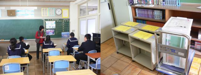 2学期にも「なのはな文庫」(四日市市図書館所蔵の本を市内小中学校を巡回して貸し出されている文庫)をキャスター付書庫に入れて各クラスを回していましたが、3学期も新たに「なのはな文庫」が来たので、明日から各クラスを回すことになりました。管理等は文化委員さんたちにお願いしています。3学期は日数が少ないので、各クラスに置かれる期間は3,4日程になりますが、新しい書庫が来たら、ぜひ見てみてください。 明日から2/12(水)までが2階教室、2/13(木)以降に3階教室に置く予定でいますので、生徒のみなさん、どんどん活用してください。 今日、HPの「各学年からのお知らせ」には、1,3年生の今日の5限目の様子が掲載されていますので、ご覧ください。 |