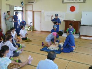昨日、8/5(日)に保々地区では一番早い、自主防災訓練が小牧南でありました。昨年から中学生の参加も呼びかけていて、昨日も数名の生徒が参加していました。写真はAEDの講習会の様子です。学校でも職員で以前、やりました。胸骨圧迫は結構、力が必要で、何度もすると次の日に筋肉痛になるほどの人もいたと聞いたことがあります。