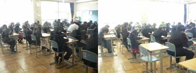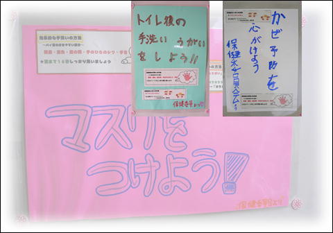 今年は例年に比べ、ここまでは雪は少ないようですが、寒さは厳しくなってきています。また空気が乾燥し、風邪が流行する季節となってきました。学校では毎朝、廊下や教室の窓を開け、換気ができるようにしています。でも予防をするには、手洗いやうがいをしっかりと心がけたり、感染予防のためにマスクをしたりするのが大事ですね。 校内のあちこちに風邪予防を呼びかける保健委員会作成のポスターが貼られていました。3年生はこれから受験の時期となりますから、多くの人がインフルエンザの予防接種をしているようです。予防接種をしていても風邪をひかないわけではありませんから予防は必要です。十分な栄養と睡眠をとり、規則正しい生活を送ることも風邪予防につながりますね。汗をかいたあと、そのままにしていたり、家でうたた寝をしたりすると風邪をひくことにつながりますから気をつけてくださいね。 近くの学校では今日から学年閉鎖になったところがあります。人が集まるところでは、インフルエンザや風邪の菌は飛んでいるでしょうから、十分に気をつけましょう。 |