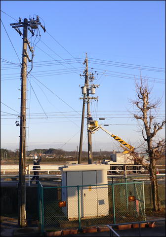 学校のパソコンは市役所につながっていて、学校で作る文書や写真等は市役所で一括管理されています。今日は朝から(実は昨日の夕方かららしいですが・・・)パソコンがつながらず、ほとんどの先生が仕事が出来ずじまいでした。午後からやっと業者の人に来てもらえ見てもらったら、校舎の東の電線が切れているのが原因とのこと。どうも昨日その道路を通った作業車?などが電線をひっかけて切っていってしまったようでした。大変な迷惑でした。16時30分過ぎにやっと修復してもらえ、HPもアップできました。