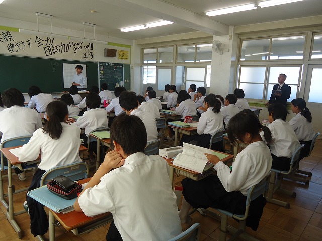 10月14日(火)は、異校種交流ということで泗商の国語と商業の先生が三重平中学校で授業を行いました。
