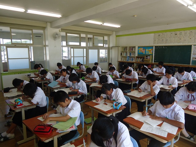10月3日(金)は、3年生の総合的な学習の時間がありました。31日(金)の文化祭に向けて取り組みを進めています。書道では、とても集中した静かな時を過ごしています。これぞ伝統文化といった感じです。