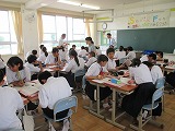 教育委員会から2名の先生に来ていただき、1、2年生の授業を参観してもらいました。