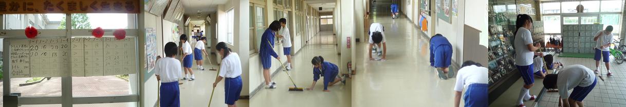 本校は古い学校・校舎ですが、来校される方々から、「廊下など校舎がきれいですね」と言っていただくことがあります。皆さんがひざをついて廊下を拭いたり、熱心に清掃活動に取り組んでいるお陰だと思います。これからもぜひ続けてほしいと思います。
