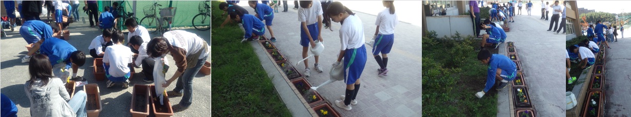 PTA環境福祉部の主催で、福祉委員会、生徒会本部とPTAでパンジーを植えました。今年のパンジーもきれいに咲いてくれそうです。 |