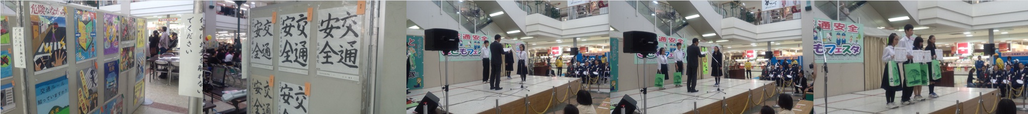 日永カヨーで、「2014交通安全こどもフェスタよっかいち」が開かれました。その中で、交通安全作品展表彰式(絵・ポスター・習字)の表彰式がありました。南中学校からは、2名がポスターの部で表彰を受けました。 |