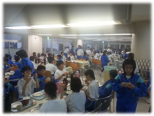 食事もそろそろ終わります。7時からの学年レクに備えます。 |