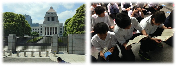 国会見学が終了です。次は大学見学です。 出発から7時間近くたちました。 少し疲れてきているようです。 |
