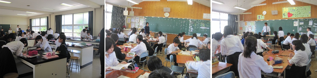5月2日(金)、5限目に授業参観を行いました。2年生では学級担任による学級活動や理科、国語、家庭の授業が行われました。グループを使って活動をしたり、一所懸命授業に集中していました。保護者の方には、お忙しい中授業を見ていただき、本当にありがとうございました。 |