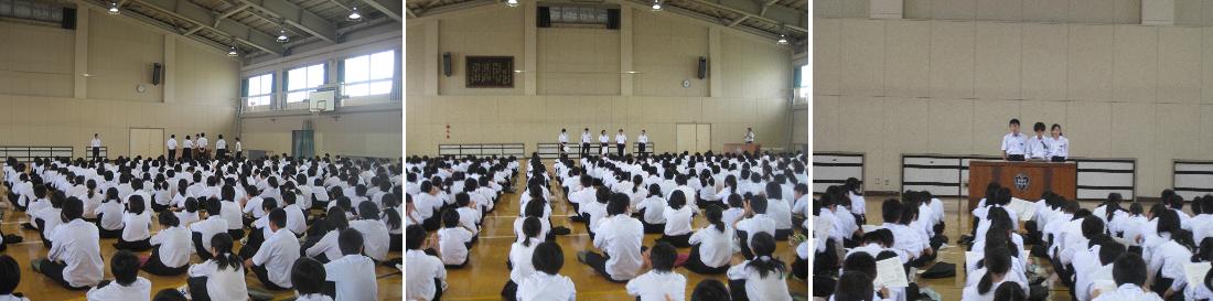 三滝中学校 お知らせボード| 件名:中体連三泗地区予選壮行会(2013.7.19) |