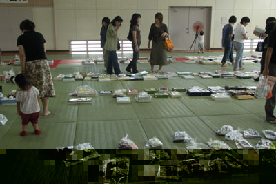 バザーが始まり、品物を見つめる目は真剣そのものです。