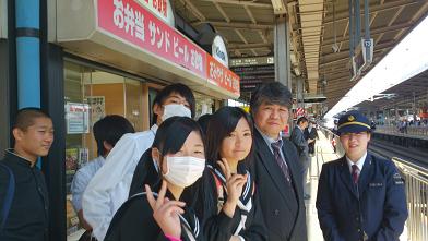 現在新幹線で広島駅に着き、ローカル線で宮島口へと向かうところです。12:30頃には宮島に到着し、学級別での記念撮影後、班別で散策する予定です。
