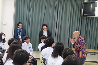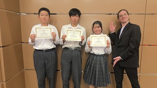【英語スピーチ・英作文コンテスト当日の3名とYEFのThomas先生】