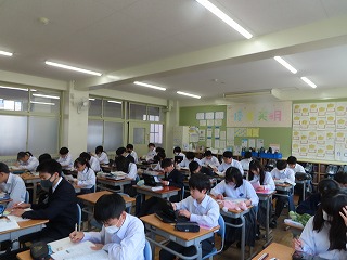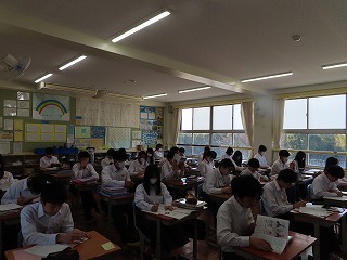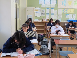 本日2月18日(水)朝8時35分頃の様子です。1年生・2年生では「学年末テスト」がはじまりました。いつもの8時30分からは「朝の読書の時間」ですが、本日からの3日間は学年末テストのための特別日課として、1限目は8時30分からはじまります。