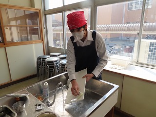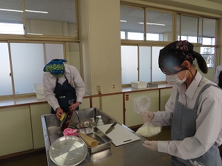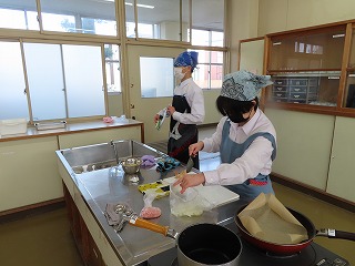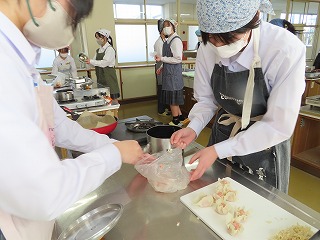 (2年3組)調理実習「焼売」「大根のはりはり漬け」班で協力しながら