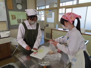 (2年3組)調理実習「焼売」「大根のはりはり漬け」班で...