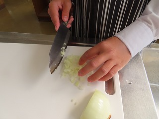 授業担当の先生による、調理手順の確認を行うとともに、包丁やガスコンロを活用するために、「安全第一・安全最優先」の徹底を子どもたちに呼びかけました。玉ねぎをみじん切りにする人、ミンチを作る人。焼売の具を皮でキレイに包む人、大根を刻む人などの役割を班ごとで確認しながらの調理がスタートしました!