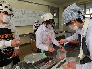 授業参観はここまでしかできませんでした。しかし3組のみなさんは、どの班のメンバーも班で確認し合ったり、声がけしながら協力して取り組む様子がいっぱい見えてきました。きっとみんなで協力して完成した「焼売とはりはり漬け」の味は格別でしょうね!3組のみんなで頑張った調理実習の様子でした!