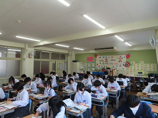 【2年生1組➡2組➡3組➡4組➡5組の8時35分頃の1限目の様子です】
