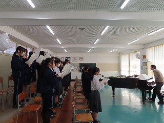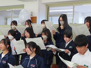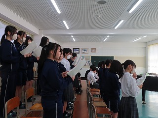 (3年1組)「音楽授業の様子」から。卒業式に向けて、歌に心を込めて
