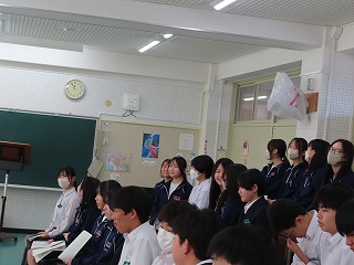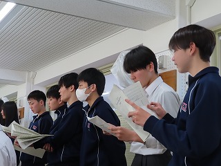 後輩たちが今日からの「学年末テスト1日目」を頑張って取り組んでいる中、3年生の先輩たちは、平常通りの日課での授業となります。3年1組の4限目は音楽授業です。3年生の音楽授業を参観するのは11月から約2ヶ月半も空いてしまいました。前回の参観は文化祭期間真っ最中で、日に日に響き渡る合唱も完成度が高くなり、クラスみんなで心ひとつにした素敵な合唱をいっぱい聴かせてもらいました。あれから、早いもので3ヶ月近くが経過しようとしています。