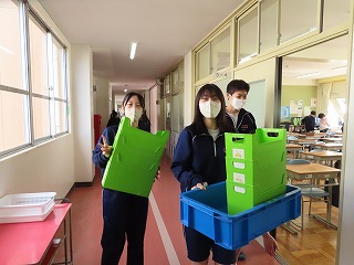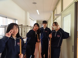 「学年末テスト1日目」が終了した1・2年生の後輩が下校した5限目。学校内には3年生のみ。そんな中、5限目の時間を活用してみんな笑顔で時間内いっぱい、『奉仕活動』に取り組んでくれました!活動の様子を写真にいっぱい収めて保護者の皆さまにも見ていただこうと思い、№①と№②の2部構成にて紹介します。
