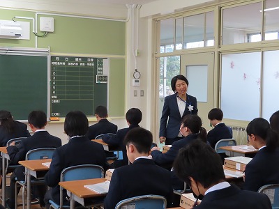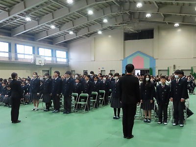 そして、この春3月に大池中学校を卒業したみなさんにとっても、その一つ上の4月1日から高校2年生になる先輩や、高校3年生になる先輩、そして、今までの大池中学校の伝統を築いていただいてきた先輩たちにとって、自慢できる、誇れる大池中学校であり続けたいと思います。いつでも安心して帰ってきてもらえるような「心の居場所」でもあり続けたいと思います。
