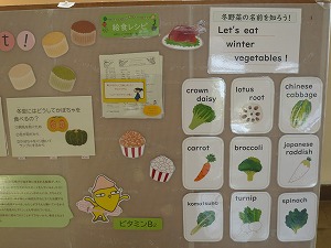 食育や読書にかかわる内容が掲示されています。『好き』や『興味・関心』のきっかけになるかもしれません。足を止めて…。