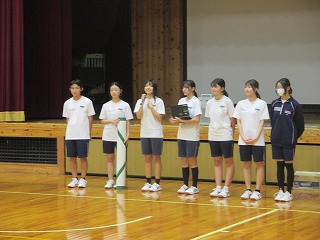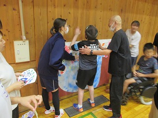 交流会の最後には、交流会のまとめとして、大池中からときらら学園の代表者が一生懸命振り返りの言葉を伝えてくれました。みんなで大きな拍手!あっという間の1時間。大池中学校の子どもたちは、自分たちで話し合って、体育館の出入り口で『両側に並んでの花道』を作ってくれました。ハイタッチや握手でお別れをしたり、中には、最後まで体育館に残ってくれて、大池中学校の子どもたちといっぱいお話をしてくれる友だちもいました。とっても心あたたまる、あたたかな第1回目の交流会となりました。