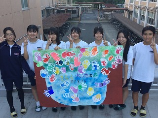 第1回目の交流会を終え、大池中学校では、職員室前の大きな掲示板に、全校のみなさんや先生方、学校に来客された方々の目にも留めていただくように『きらら 大池の森』として掲示をしました。交流会でみんなの手形を思い思いに一緒にチカラを合わせて張り詰めた交流の証は、ひとつの大切な交流のシンボルとして、大池中学校をあたたかくしてくれています!