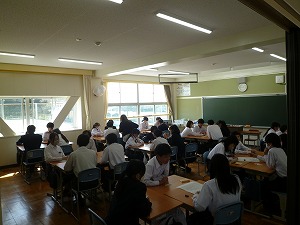 担当教師(たんとうきょうし)による教材(きょうざい)などの説明では、しんけんに話を聞く姿(すがた)も見られました。聞きもらしや、わからないことなどあったら、また聞いてください。