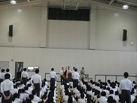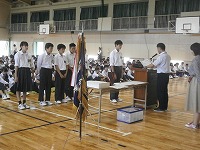 1限目は、「始業式」が行われ、校長先生からは、「生活リズムを整えること」「大会での活躍と勝ち負けが問題ではないこと」「2学期クラスで取り組む行事を大切にすること」などのお話がありました。