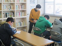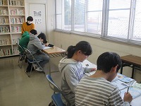 地域のボランティアの方や学生ボランティアの方が、熱心に勉強を教えていただいています。たいへんお世話になります。(大池中学校3年生から11名参加し、熱心に勉強しています。)
