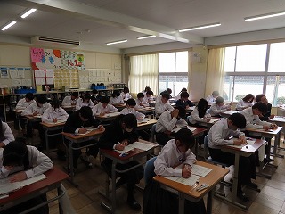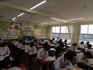 2月18日(水)から始まった1・2年生の「学年末テスト」。本日2月20日(金)で3日間の最終日を迎えました。写真の様子は3限目の1年生のテストの様子と4限目の2年生のテストの様子です。