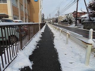校区内の通学路は、まだまだ積雪により自転車通学に不安を感じるところも一部ありますが、学校周辺では本校教職員のみなさんが、6時30分頃から雪かきをしていただいたことによって、学校周辺の通学路、自転車置き場も、職員玄関周辺も安全に通学ができるようにしていただきました。