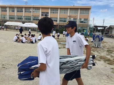 子どもたちが先輩と後輩がコミュニケーションをとりながら、協力しながら、一生懸命に準備を頑張る様子を紹介したいと思います。午後の準備を手伝ってくれた生徒のみなさん、そして先生方、本当にありがとうございました!これで、気持ちよく明日の体育祭を迎えられます!感謝です!