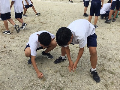 本日10月2日(木)の午後。暑さが幾分気持ちよくなってきたように思う13時30分頃のグラウンド。明日の体育祭に向けて、3年生を中心に、2年生、1年生もみんなで気持ちよく準備をしてくれました。3年生の先輩の姿も、2年生、1年生の後輩の姿にも、まったく「やらされている準備」ではなく、仲間と、先生と一緒になって大池中学校体育祭をみんなで創り上げる!そんな気持ちがグラウンドにいる子どもたちからしっかりと伝わってきます!