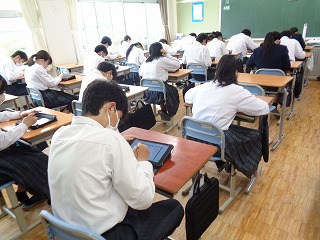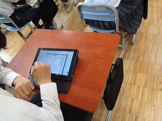 タブレットを使って漢字の小テストをしています。