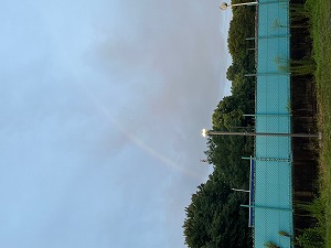 今朝、きれいな虹(にじ)が見られました。(写真では分かりにくいですが…)
