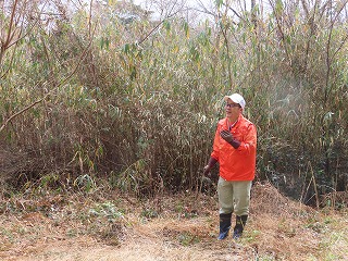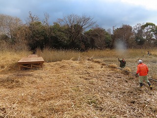 「ふるさと三重をつくる会」のみなさんや、「御立地区自治会」のみなさんや、「西坂部町川向自治会」のみなさんが9時から11時までの2時間、西部指定地の湿地に覆い茂っている葦(よし)や芒(すすき)などの草が一面に生えていて、それを参加された皆さんで草刈り、集草作業、日光が当たるようにするための竹伐採などに取り組みました。