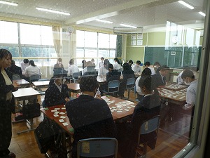 各学年、集中(1年生国語科の授業では、百人一首を楽しみながら集中)していましたので、廊下(ろうか)からの撮影(さつえい)となりました。