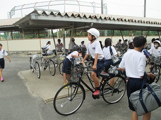560人の生徒が下校すると、道路が混雑してたいへん危険ですので、時間差で下校しています。
