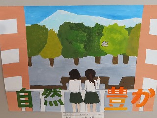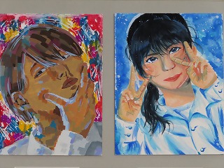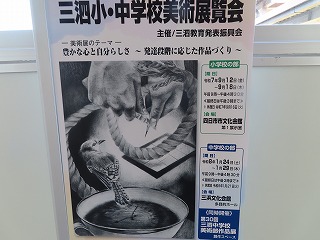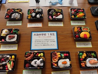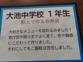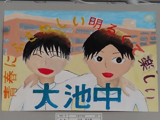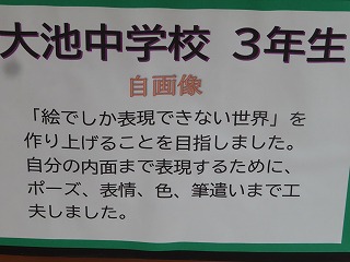 大池中学校からは、3年生「自画像」、2年生「大池中学校アピールポスター」、1年生は「粘土でつくるお弁当」。3年生は12名、2年生は8名、1年生は10名の30名の心のこもった代表作品が大池中学校代表として出展されました。