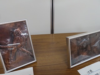 また、同会場では、三泗地区の中学校美術部展も開催されています。30回を迎える美術部展です。日ごろの美術部での活動の成果がしっかりと表れている創作作品がいっぱい。2年生・1年生部員の一人一人の個性が表現されている作品ばかりです。美術部のみなさんの作品の世界にお越しください!