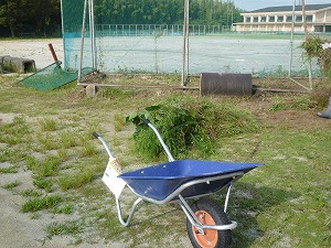 『除草作業part2』を9月3日に予定していますが、天気が心配なところです。生徒の皆さんも、授業などで運動場に出る時には、少しでも草を抜(ぬ)いてくれると助かります。よろしくお願いします。