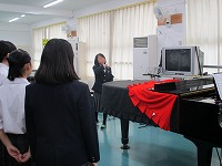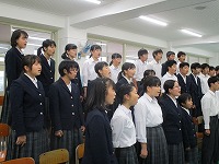 大池中学校からは、3年3組が代表として出場します。(「信じる」を披露します)