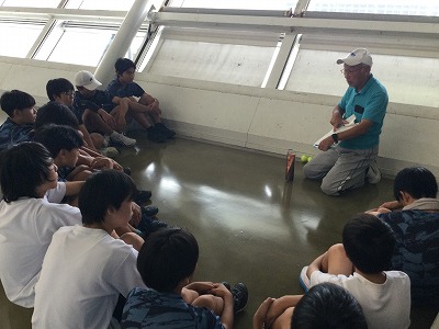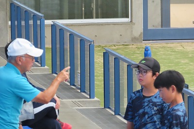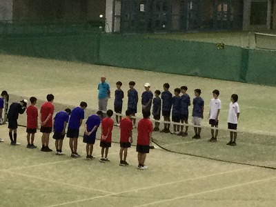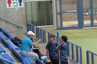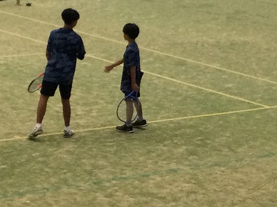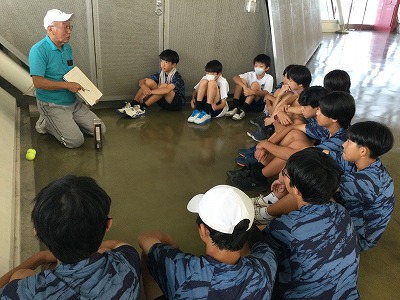 昨日から始まった中体連新人大会においては、男子部の顧問の先生が新人大会運営の責任者のため、男子部の監督として、大会での子どもたちへの指導に携わっていただきました。写真のように、団体戦メンバーへのアドバイスはもちろんのこと、試合後には、男子チーム全員を集めての試合振り返りを実施していただきました。大会に出場した子どもたちだけではなく、男子部全員が学びを深めることができるように指導をいただきました。